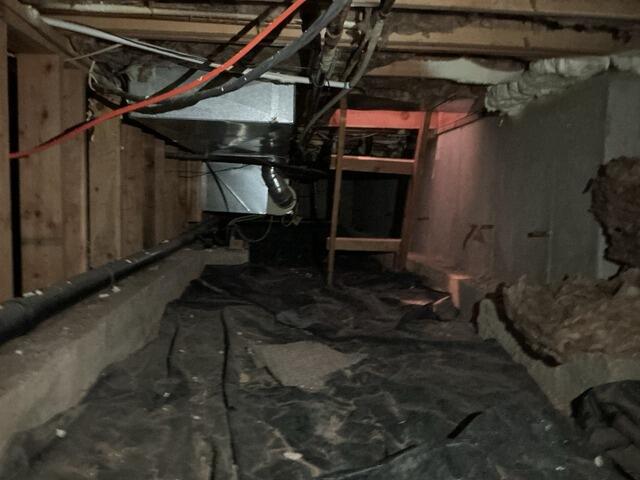 Before encapsulation, the crawl space had exposed soil and outdated vapor protection, allowing ground moisture to rise into the home. This can contribute to higher humidity levels, musty odors, cold floors, and potential wood rot or mold growth — especially in mountain climates like Park City where snowmelt and seasonal moisture are common.