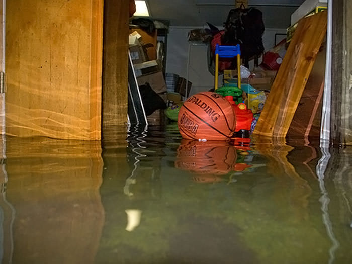 A basement flood can lead to extensive damage to finishing materials and stored items.