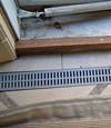 Installing our drain along the inside of the door will also protect the system from clogging with outside debris, such as dirt, sand, sticks, and leaves.