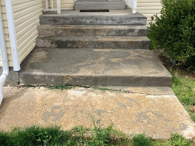 Our team stabilized and lifted the concrete using PolyLevel®, a high-density polyurethane foam injected beneath the slabs to fill voids, restore proper support, and bring the steps back to a level position. After the concrete was lifted and aligned, NexusPro® joint and crack sealant was applied to seal visible cracks and seams, helping protect the area from water infiltration and future soil erosion.