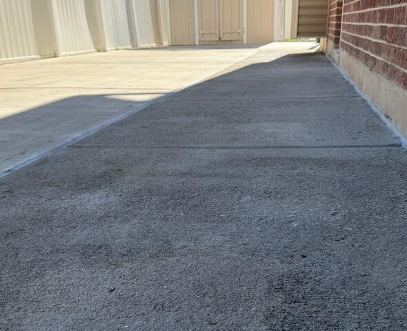 The concrete walkway running along the side of this home had settled unevenly near the foundation wall, allowing water to pool near the base of the house. Using PolyLevel®, our crew carefully lifted and leveled each slab. NexusPro® was then applied to seal the joints, creating a smooth, watertight finish. The completed project ensures better drainage and long-term foundation protection.