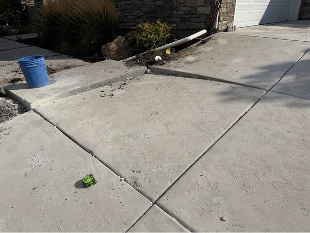 This Sandy, UT home had a sunken driveway panel that created a noticeable lip and trip hazard at the control joints. Settlement from Utah’s freeze–thaw cycles, gutter runoff, and soil washout caused the slab to drop and redirect water toward the garage. Our crew used polyurethane foam injection (PolyLevel®) to lift the concrete back to the correct grade, stabilize the base soils, and restore proper drainage. After the lift, we sealed the joints to help keep water out and protect the repair.